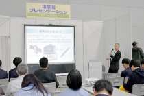 セミナー会場では、「建築物の地震等による倒壊防止、耐震、耐津波対策」をテーマにプレゼンテーションを実施。鋼構造について建築委員会の澤泉紳一副委員長は災害に強い鋼構造の公共施設・防災拠点・住宅の整備が、国土強靭化に有効だとし、「薄型軽量形鋼造の住宅『スチールハウス』がそのベースになる」と強調した。 |
