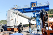 八代建設業協会(中山英朗理事長、熊本県建設業協会八代支部)は3日、八代市坂本町の土木と建築の工事現場で見学会を開催した。熊本県建設業協会との共催。建設業に興味を持ってもらおうと、八代工業高校インテリア科の1・2年生約80人を招き、施工の雰囲気などを体感してもらった。