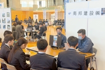 天草地区の建設産業5団体は14日、天草市民センターで天草工業高校生を対象に合同企業説明会を開いた。機械・電気・土木科の2年生約100人を招待。会員企業各社は、展示や説明に工夫を凝らし、それぞれの魅力をアピールした。