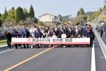 令和5年7月豪雨で落橋した金内橋(山都町)の本復旧工事が完了し、3月28日の正午に供用開始した。新橋は経済性や合理性から鋼橋とし、被災原因となった橋脚はなくしている。仮橋設置などを含む総事業費は約12億6300万円。開通前には中島東部小学校跡地の体育館で式典を開き、関係者は通行再開を喜んだ。 |