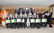 地域の景観形成に貢献している個人・団体を顕彰する制度で、37回目。20件の応募から、くまもと景観賞2点、地域景観賞2点、緑と水の景観賞と奨励賞各1点を選んだ。木村知事は「県を代表する素晴らしい景観づくりに多大な貢献をいただいた」と感謝した。 |