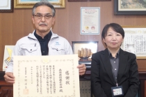 国土交通省の建設工事及び建築工事基幹統計調査に貢献した功績が認められ、南興建設(津奈木町、野ア武寿代表取締役)が国土交通大臣表彰を受賞した。16日、芦北総合庁舎で伝達式があり、芦北地域振興局土木部の最上有希部長が野ア氏に表彰状を手渡した。