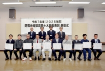阿蘇地域振興局は、2025年度の土木部長表彰で、工事6社、委託2社を選んだ。2月25日に同事務所で式典が行われ、塚本貴光土木部長から受賞者に表彰状が贈られた。